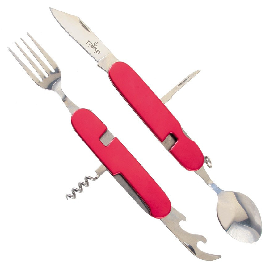 Il coltello multiuso staccabile di Third include una forchetta, un apribottiglie, un cavatappi, un tagliacapsule, un coltello e un cucchiaio, offrendoti gli strumenti essenziali per goderti il cibo e le bevande ovunque.