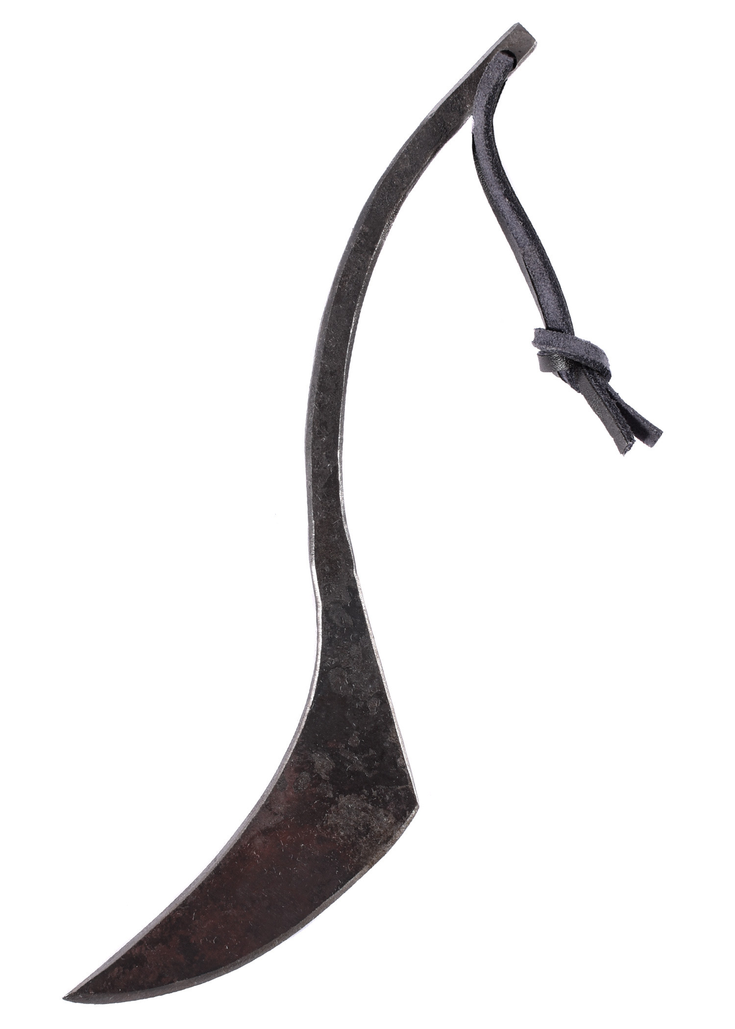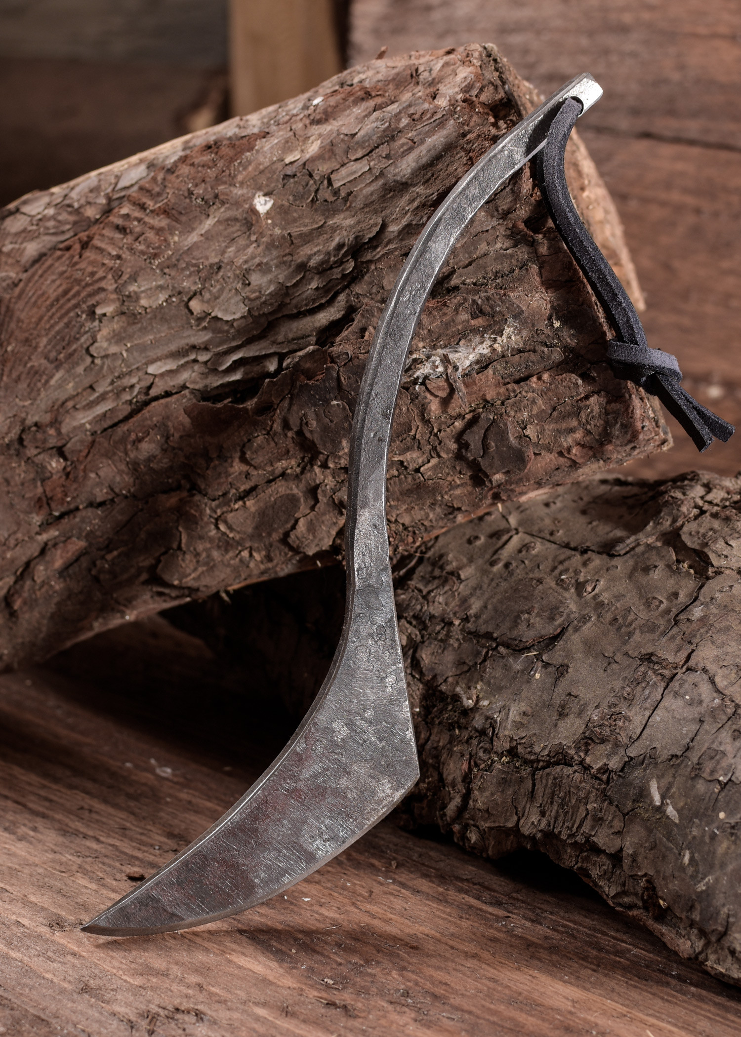 Il suo design curvo e affilato non solo offre un aspetto impressionante, ma migliora anche l'efficienza in ogni movimento, rendendo ogni compito più semplice e veloce. L'impugnatura, personalizzabile con cuoio, legno, corno o osso, offre una presa comoda e sicura, adattandosi alle tue preferenze e al tuo stile personale.
