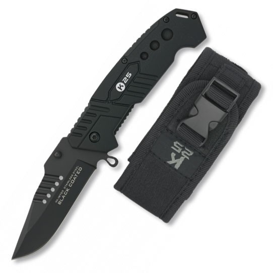 Coltello tattico K25 con sega e manico G10, con fodero