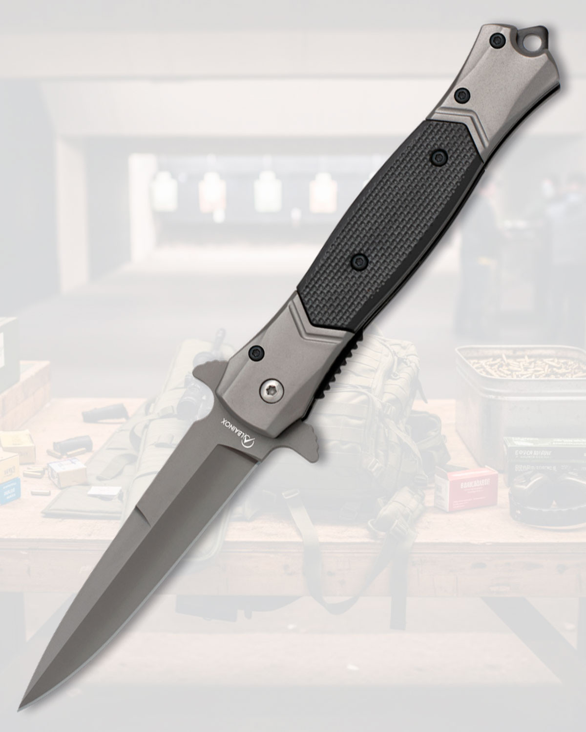 Se desideri acquistare il Coltello tattico Albainox finitura titanio, lama 9 cm. Ti porterai a casa un coltello pieghevole pensato per coloro che apprezzano l'affidabilità, la comodità d'uso e una finitura che resiste al giorno dopo giorno, pronto a accompagnarti in ogni compito.