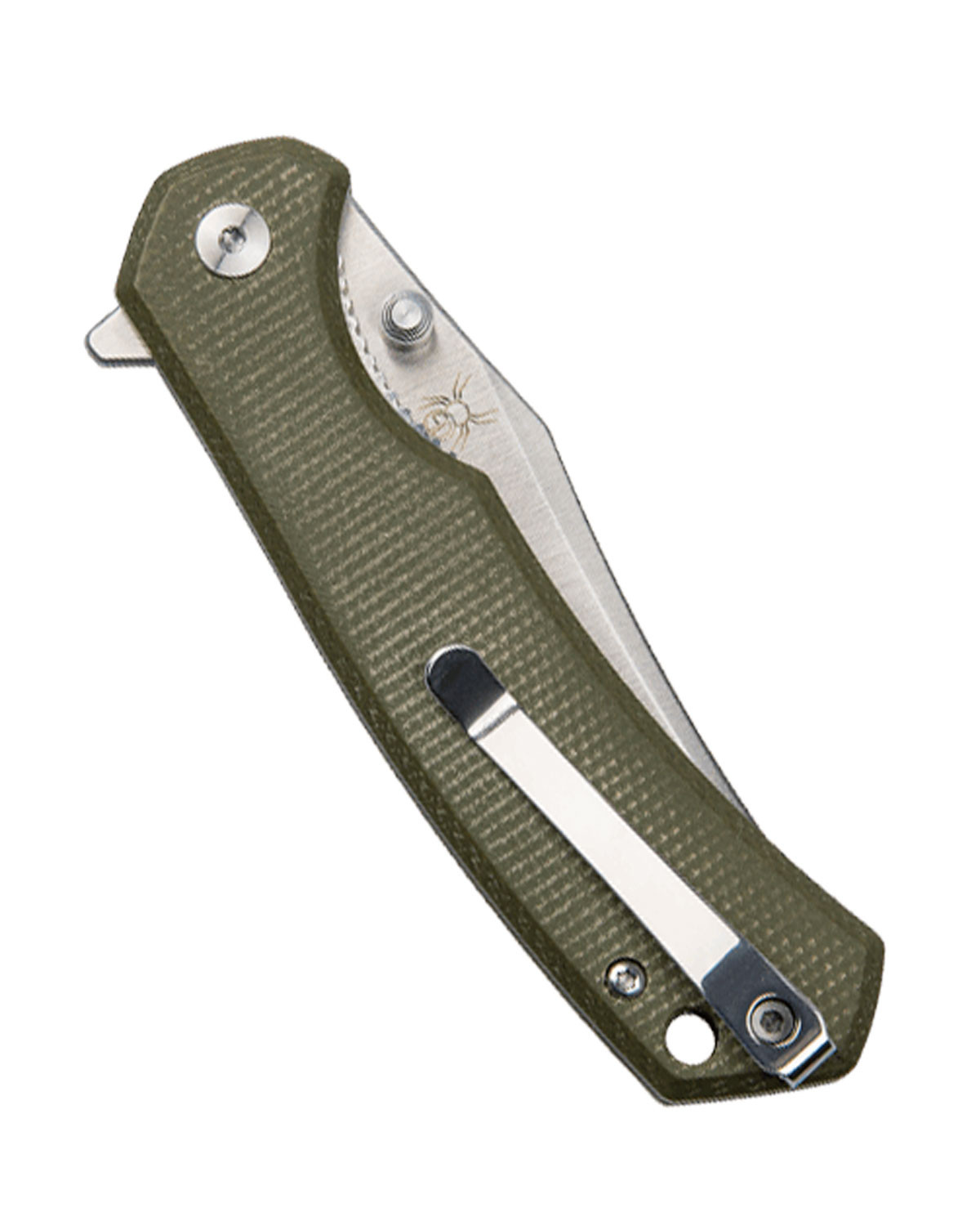Il manico in Micarta canvas verde oliva non solo offre un aspetto sobrio e professionale, ma la sua superficie ruvida migliora la presa in condizioni umide o con guanti, per assicurarti movimenti sempre saldi e controllati. Il foro all'estremità consente di aggiungere un cordino di sicurezza, facilitando il trasporto o l'accesso rapido.