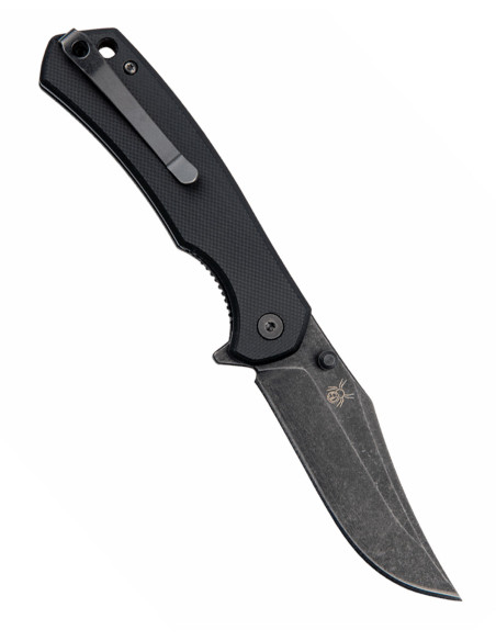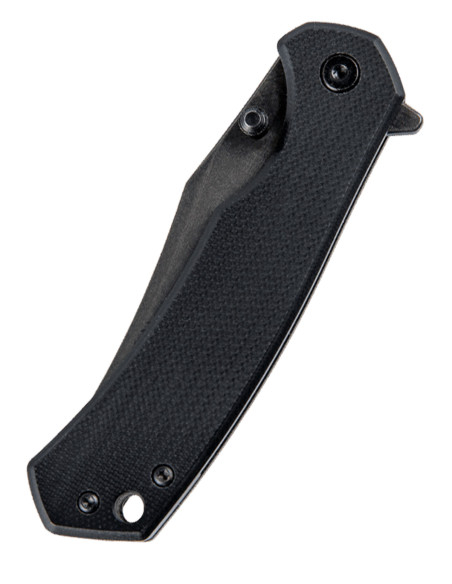 Il manico in G10 nero, dalla silhouette ergonomica e dalla finitura liscia, si adatta alla mano per offrire una presa comoda e sostenuta senza affaticare, inoltre consente una facile manutenzione grazie alle viti accessibili. Il foro alla coda consente di aggiungere un cordino o un accessorio per portarla appesa o assicurata, rendendola facile da integrare nel tuo equipaggiamento quotidiano.