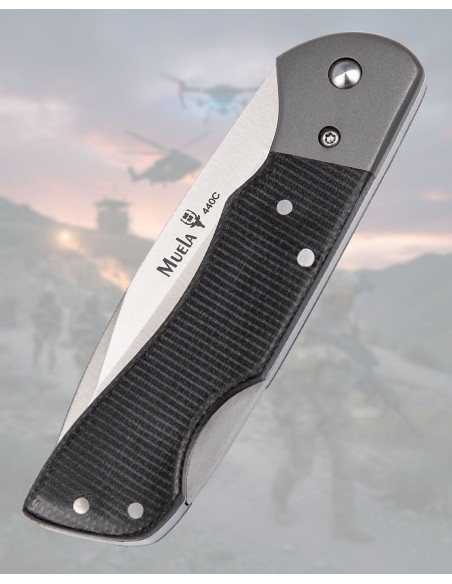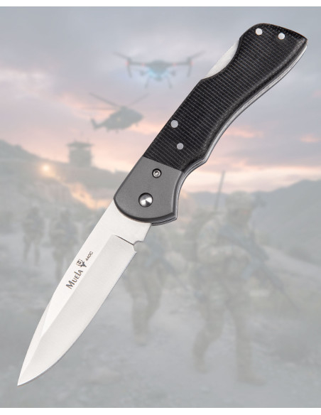 Coltello Muela 440C Micarta Nera Lock Back con fodero
