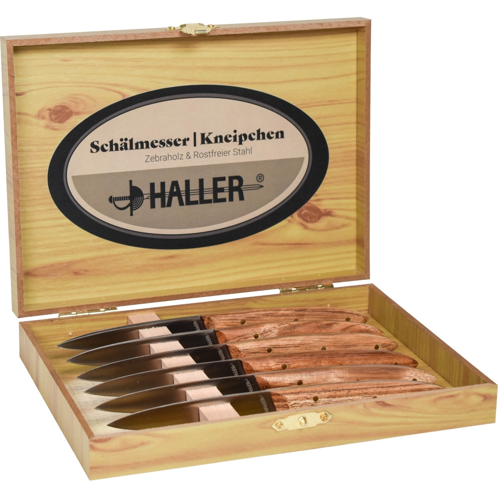 Set di 6 coltelli con manico in legno zebrano in scatola (17 cm.)