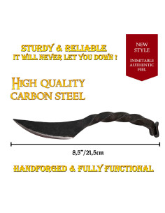 Questo coltello medievale di 21,5 cm è un'autentica opera d'arte della forgiatura tradizionale, progettato per chi apprezza la qualità e la storia. Realizzato in acciaio al carbonio temprato mediante tecniche secolari, questo coltello garantisce una durabilità e una resistenza eccezionali, superando le repliche economiche che tendono a rompersi rapidamente. Se cerchi uno strumento che resista al passare del tempo, questo coltello è la scelta perfetta.