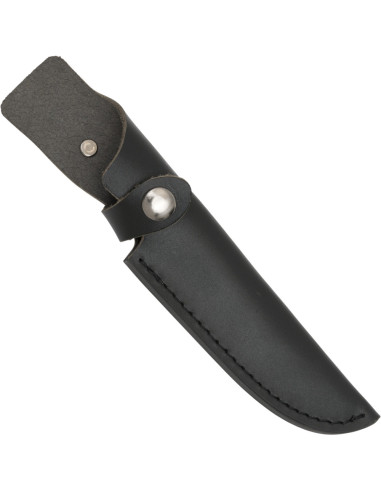 Il manico in legno, con il suo design dritto e il classico colore marrone, offre una presa comoda e sicura, permettendoti di utilizzarlo con fiducia. Inoltre, il suo fodero in similpelle non solo protegge la lama, ma aggiunge anche un tocco di sofisticatezza. Con una chiusura a bottoncino e una catena a pallini, puoi portarlo con te in modo pratico e sicuro, sia sul tuo portachiavi che nello zaino.