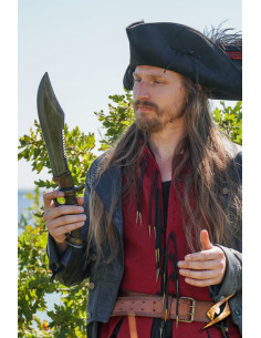 Sei pronto a sembrare un autentico corsaro o avventuriero di mondi pericolosi? Questo coltello da pirata per LARP ti avvicina a quell'immagine rude e imponente che cerchi, combinando l'estetica di un'arma usata in epiche battaglie e la sicurezza necessaria per vivere le tue avventure senza preoccupazioni. Con il suo design ispirato ai coltelli da guerra della Prima Guerra Mondiale, la sua lama curva e i dettagli vetusti evocano un passato di battaglie e sopravvivenza.