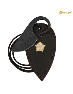 Più di un oggetto, offre un'esperienza visiva e tattile pensata per rievocazioni, fiere medievali, collezioni personali o come omaggi per occasioni speciali. La sua finitura scura, con un filo chiaramente definito, esalta il contrasto tra la lama e la custodia, rendendola un pezzo che genera conversazioni e ammirazione.
