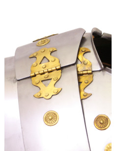Lorica Segmentata è nota per il suo design distintivo e l'incredibile durata. Ognuna delle quattro sezioni di questa armatura si adatta perfettamente con ganci e gruppi di collegamento che la tengono saldamente in posizione, offrendo una protezione senza pari senza sacrificare il comfort.