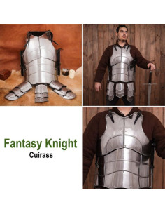 Corazza da cavaliere medievale lucida Realizzata in robusto acciaio dolce calibro 18, questa corazza copre completamente il busto, l'inguine e i fianchi pur rimanendo leggera. È disponibile in tre taglie: Medium (94-104 cm di torace), Large (105-115 cm di torace) ed Extra Large (116-126 cm di torace) ed è altamente regolabile grazie alle sue molteplici cinghie in vera pelle. L'assemblaggio interno accuratamente progettato consente una mobilità del busto sorprendentemente buona quando ci si sporge in avanti e le tre bande gli conferiscono un aspetto unico che sembra uscito direttamente dal tuo universo fantasy preferito.