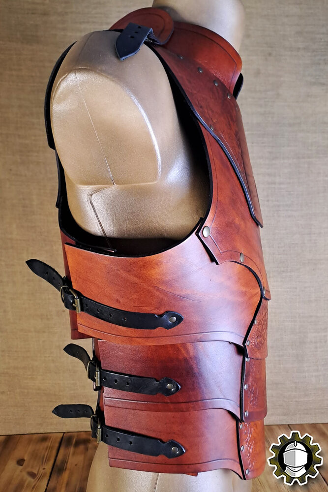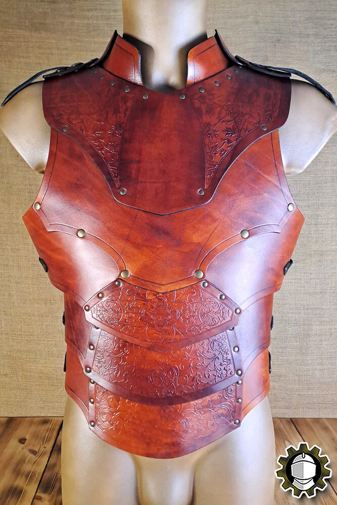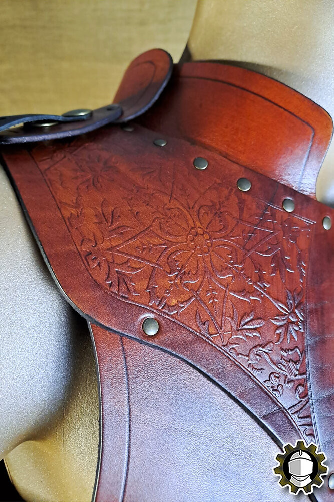 Pettorale gladiatore in cuoio regolabile per LARP e cosplay, marrone