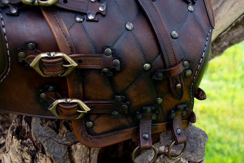 Pettorale medievale in cuoio modello Sindri, colore marrone