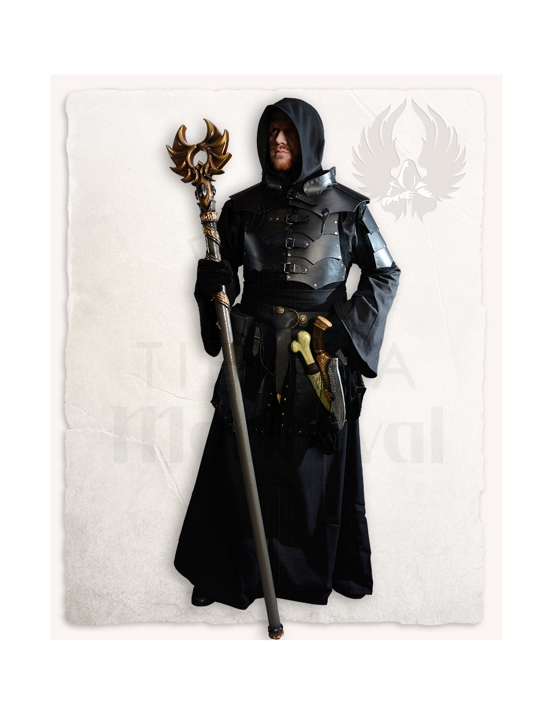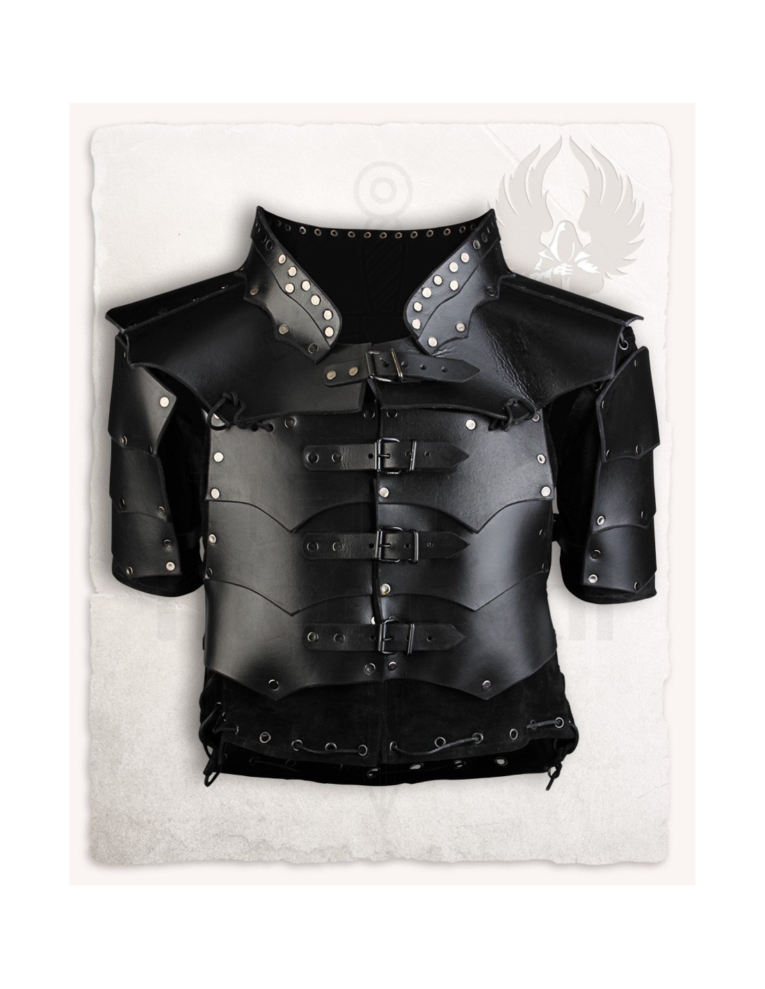 Questo guardaroba in stile medievale o fantasy può essere completato con una camicia in rete o una giacca imbottita, offrendo diverse combinazioni per ogni look. Inoltre, si abbina perfettamente con i tassets coordinati, così come con le gomitiere e le grebette della serie, permettendo di creare un completo completo e coerente, ideale per cosplay, ricostruzioni o attività ricreative.
