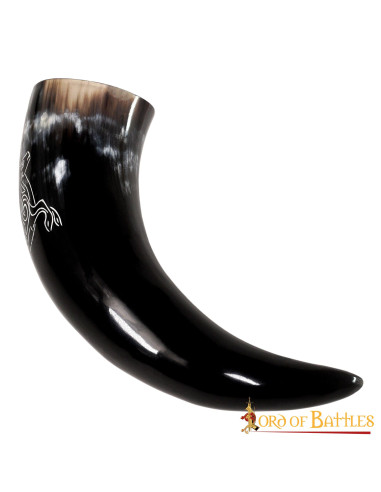La bellezza di questo corno non risiede solo nel suo esterno lucido alla perfezione, ma anche nell'incredibile incisione del motivo di ispirazione celtica che lo adorna. Ogni dettaglio è stato meticolosamente lavorato per trasportarti al tempo dei coraggiosi guerrieri vichinghi e dei mistici druidi.