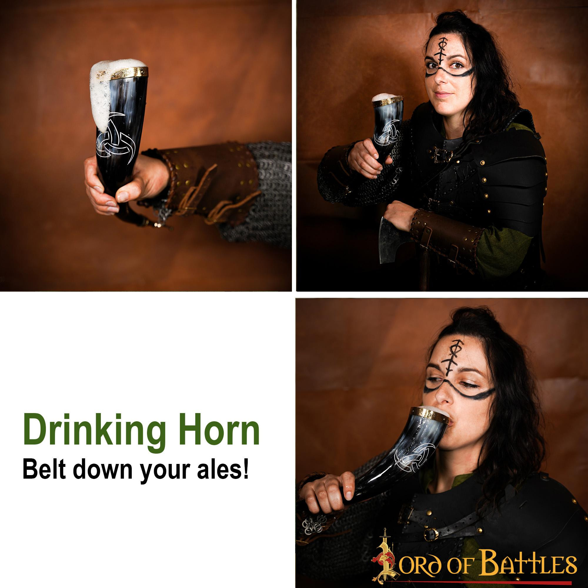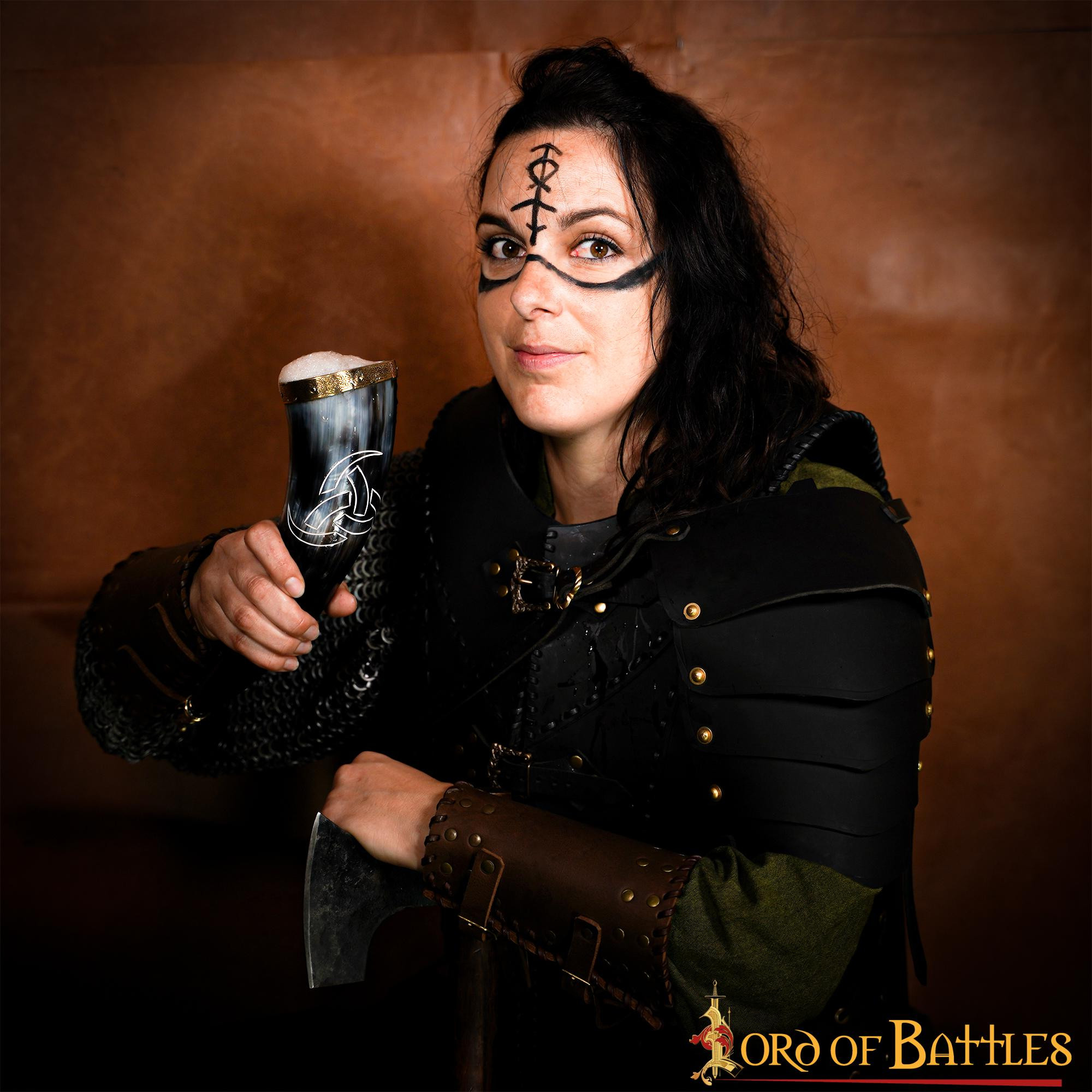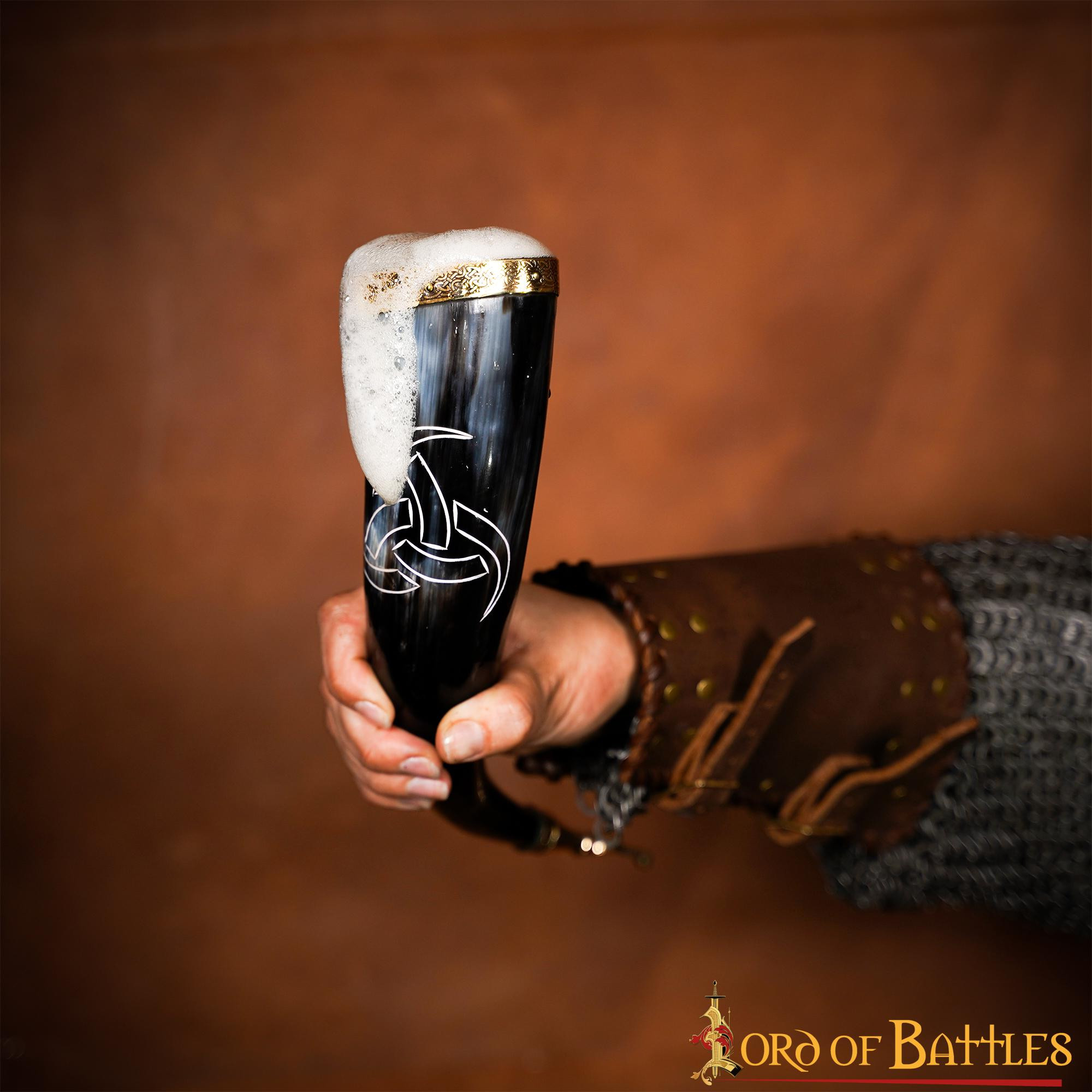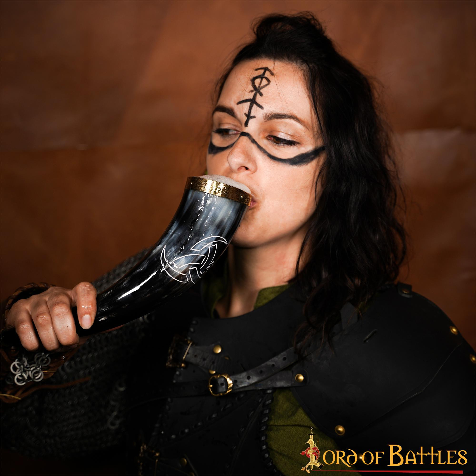 Corno potabile vichingo Re del Nord bandoliera marrone (300 ml.)