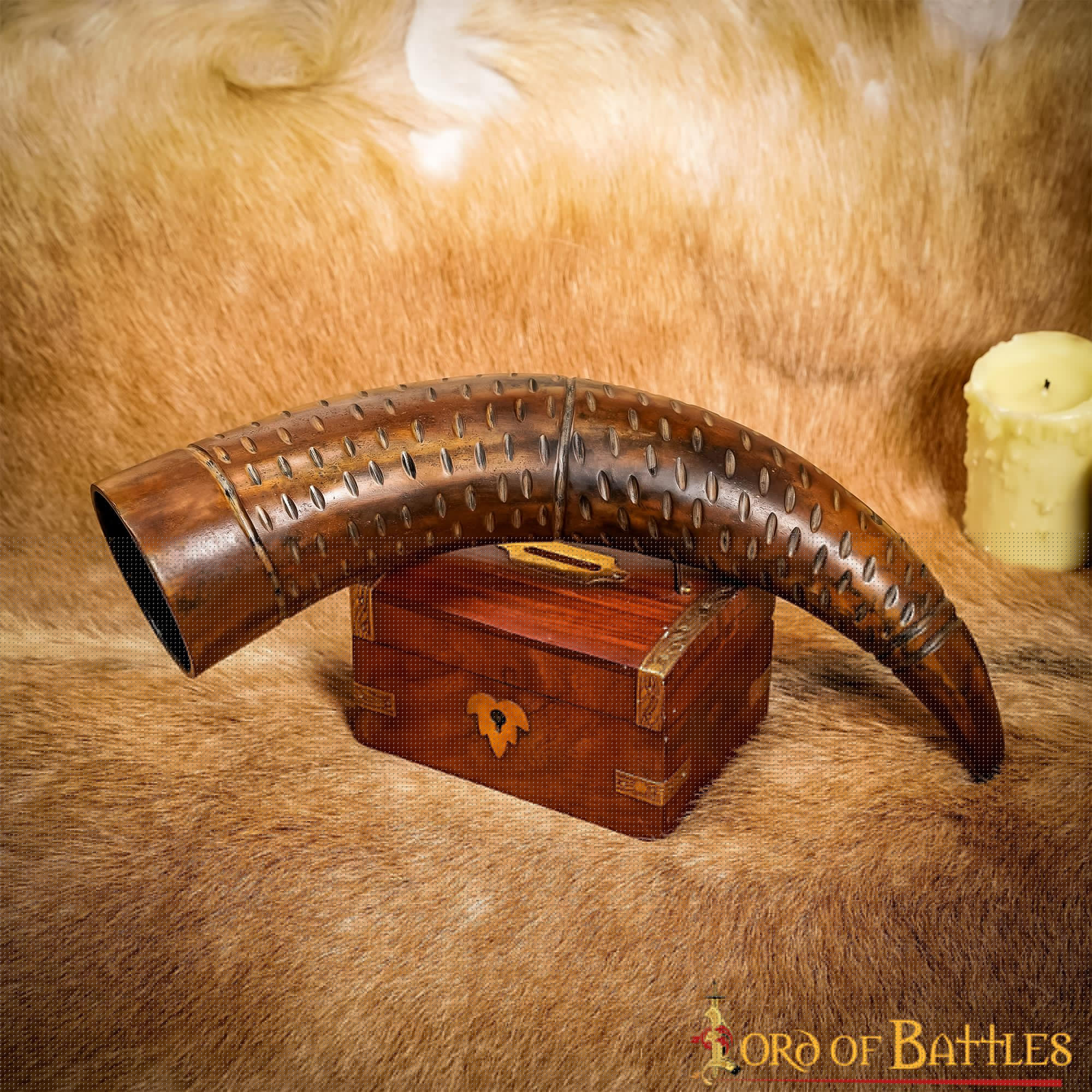 Questo corno per bere si distingue per il suo design unico e l'aspetto robusto, che lo rendono il regalo ideale per te e per i tuoi cari. Le sue tacche incise gli conferiscono un tocco speciale, rendendo ogni sorso un'esperienza indimenticabile.