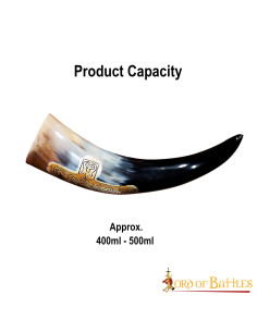 Con una capacità totale di circa 400-500 ml, questo corno è perfetto per soddisfare la tua sete in ogni occasione. Sia che tu lo usi come parte del tuo abbigliamento vichingo a una festa a tema vichingo o semplicemente per goderti un drink rinfrescante a casa, questo corno ti riporterà direttamente all'era vichinga.