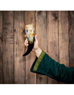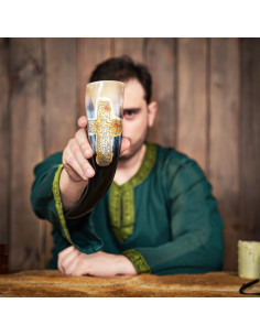 Sei pronto a provare l'autentica sensazione e lo stile vichingo? Vi presentiamo il corno vichingo con croce incisa del rinomato marchio Lord of Battles. Questo corno è realizzato a mano con corno di bue di provenienza etica, garantendo non solo la sua qualità e autenticità, ma anche la sua sostenibilità.