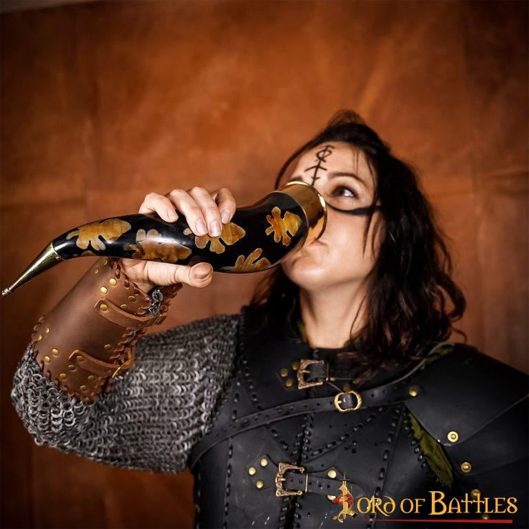 Portabicchieri e tazzine in pelle nera per bicchieri e tazzine in corno
