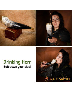 Scopri l'autentica essenza vichinga con il corno per bere vichingo modello Jormungandr. Non aspettare oltre e aggiungilo alla tua collezione di oggetti storici che ti trasporteranno in un'epoca passata piena di coraggio e avventura.