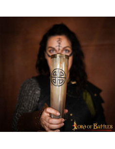 Il nostro corno per bere con nodo celtico è l'aggiunta perfetta per gli amanti della storia, della fantasia e dell'autenticità. Ogni corno è unico in quanto è stato realizzato a mano da un vero corno di bue, conferendogli un carattere speciale e autentico. Con una capacità di circa 300-400 ml, è l'ideale per gustare un buon idromele o qualsiasi altra bevanda a scelta.