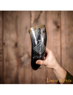 Sogni di intraprendere un'autentica esperienza vichinga? Allora non puoi perdere l'occasione di acquistare il corno potorio vichingo modello Yggdrasil. Questo imponente corno è stato meticolosamente realizzato a mano da un vero corno di bue, garantendone l'autenticità e immergendoti completamente nella cultura vichinga.