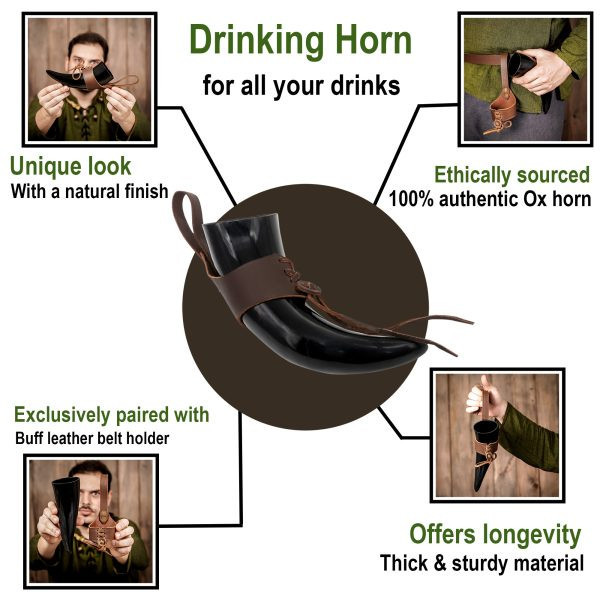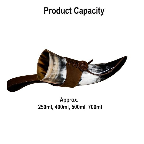 Questo corno vichingo è appositamente progettato per bevande con una gradazione alcolica fino al 20%, in modo da poter gustare i tuoi idromele e liquori preferiti in tutta comodità. Tuttavia, è importante notare che non è adatto alla lavastoviglie o per bevande calde. Si consiglia di lavarlo sotto l'acqua corrente prima dell'uso e di trattarlo con cera d'api dopo ogni utilizzo per garantirne la durata.