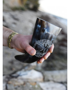 Corno vichingo, l'albero della vita Yggdrasil con supporto (200-300 ml.)