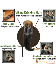 Non perdere l'occasione di possedere questo autentico corno potorio con la potente runa Algiz, perfetto per le tue riunioni con gli amici o come elemento decorativo nella tua casa.