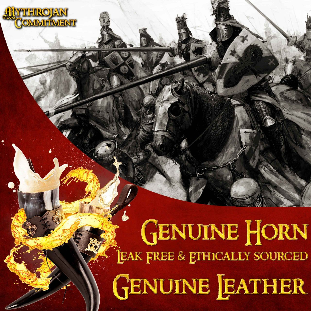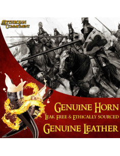 Realizzato a mano con vero corno di provenienza etica, il nostro corno medievale del soldato leale viene fornito con un baldric in pelle con una fibbia che consente di appenderlo saldamente alla cintura. Inoltre, il design del corno è pensato per essere privo di perdite al 100%, il che significa che puoi goderti le tue bevande preferite senza preoccuparti di fuoriuscite.