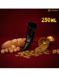Questo corno non è solo funzionale, ma è anche un accessorio ideale per eventi medievali, matrimoni, cosplay o LARP. Immagina di condividere una buona birra o un idromele durante un caldo banchetto o un indimenticabile matrimonio medievale, circondato da amici e compagni. Questo corno ti accompagnerà dall'accampamento sul campo di battaglia fino agli imponenti tavoli nella sala del tuo signore.