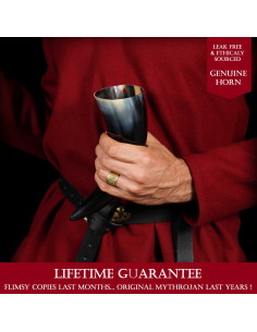 Vuoi aggiungere un tocco autentico alle tue celebrazioni? Questo corno vichingo di Mythrojan è la scelta perfetta. Con una capacità di 600 ml, è realizzato artigianalmente in vero corno, lucidato e sigillato per garantire che sia completamente ermetico e durevole. Ogni corno è un pezzo unico, realizzato da abili artigiani che scelgono con cura il corno per la sua bellezza e resistenza. Le variazioni naturali di colore e forma rendono ogni corno speciale ed esclusivo.