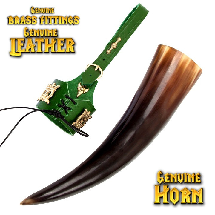 Il corno viene accompagnato da una bandoliera in vera pelle verde realizzata a mano, che ti permetterà di portarlo sempre con te sulla cintura, aggiungendo un tocco di eleganza al tuo outfit. Inoltre, con la borsa protettiva Mythrojan inclusa, trasportarlo è più facile che mai. Questa borsa garantisce che il tuo corno sia protetto mentre viaggi da un evento epico a quello successivo.