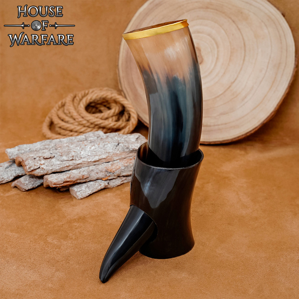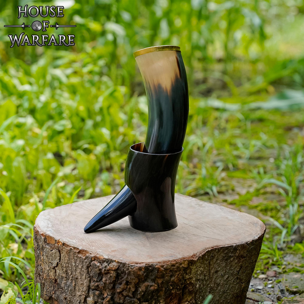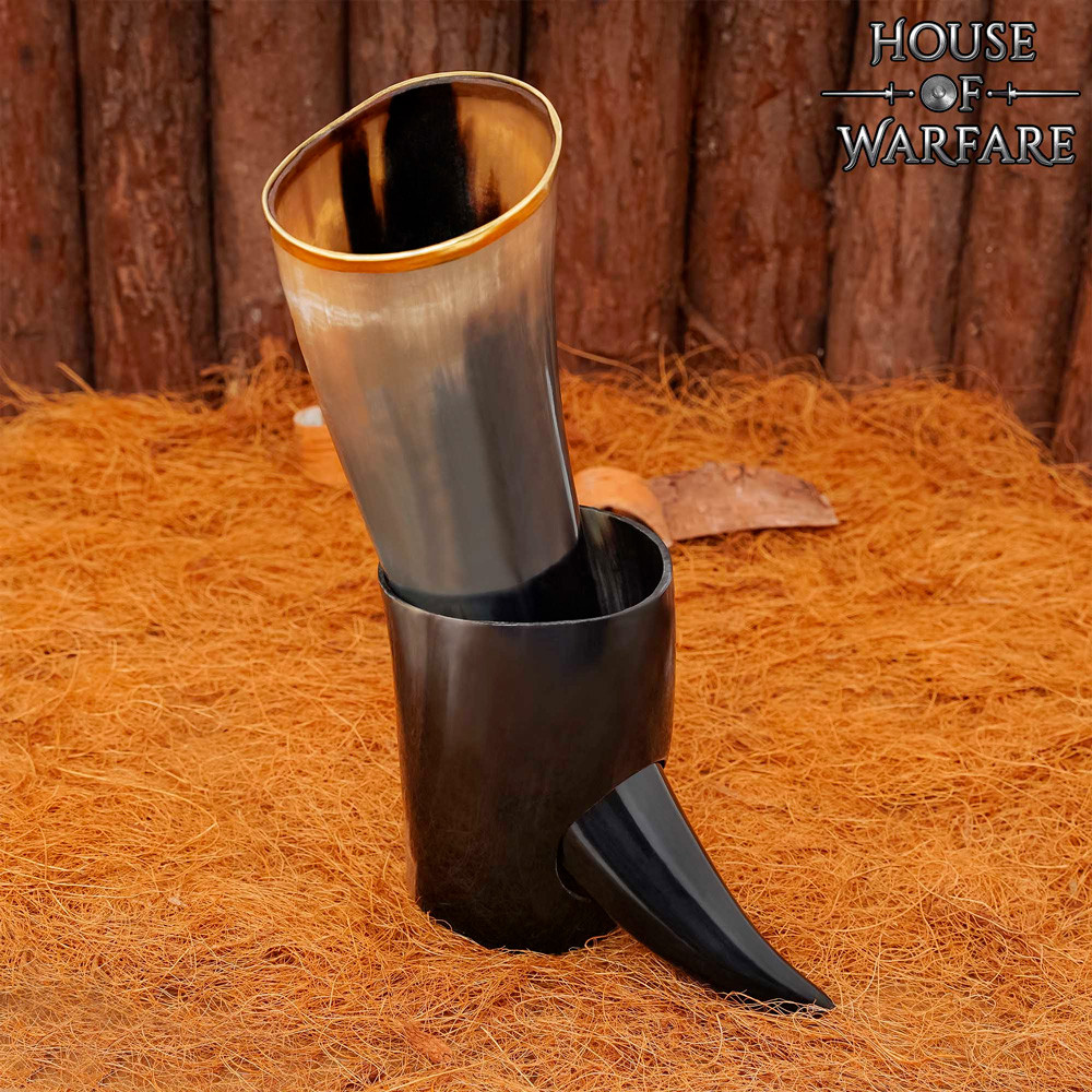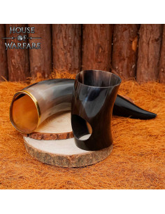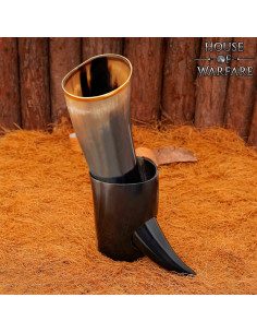 Corno vichingo naturale per bere con finitura lucida (150 ml).