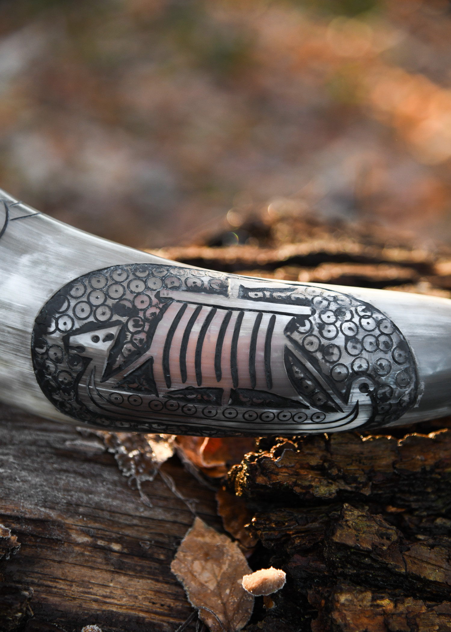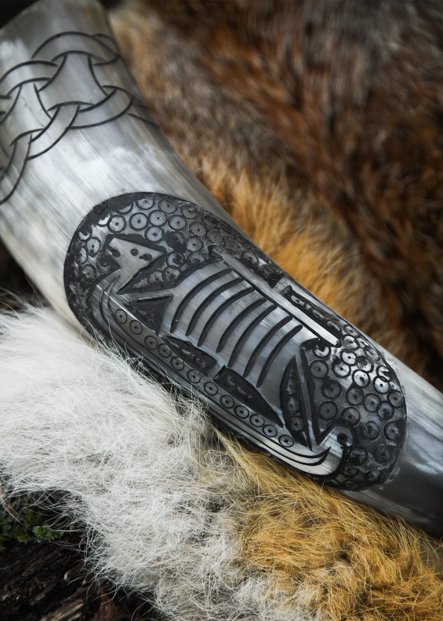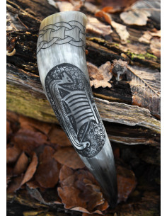 Corno per bere inciso Barca vichinga