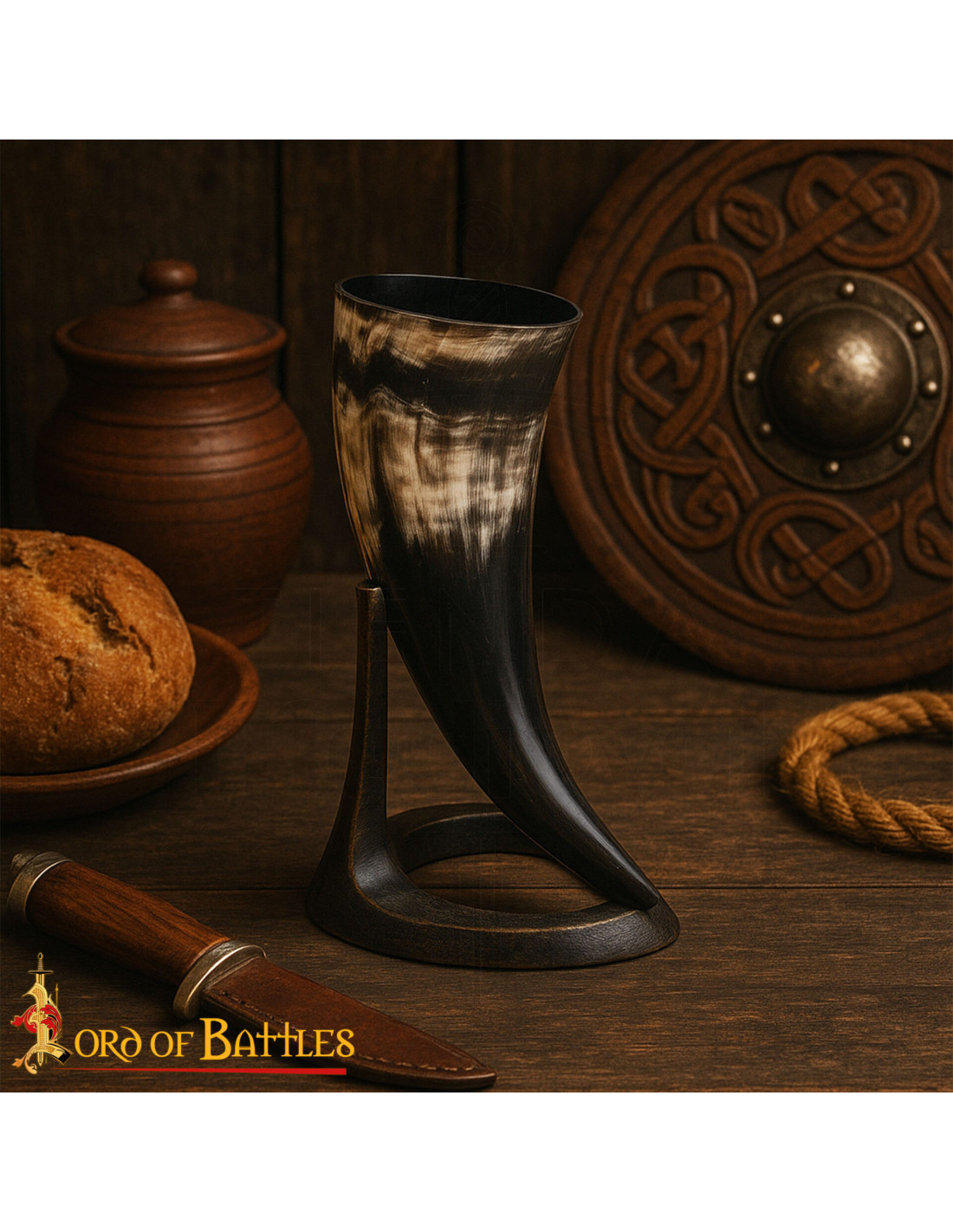 Ideale per degustazioni e momenti cerimoniali, la sua dimensione compatta consente di gustare idromele, birra fredda o bibite nella giusta dose, evitando fuoriuscite e permettendo più brindisi in una sola serata. Quando non lo usi, funziona come un oggetto decorativo di presenza, aggiungendo calore e personalità a qualsiasi tavolo o mensola.