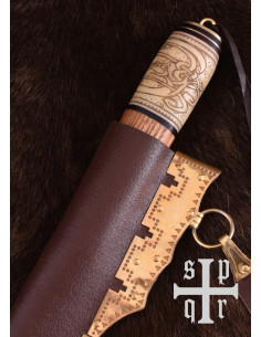 In un mondo dove apparenza e funzionalità fanno la differenza, questo coltello artigianale con acciaio damasco di 256 strati e un design che combina legno e osso, riflette il tuo carattere indomabile. Il suo peso e dimensione, attentamente equilibrati, ti offrono controllo assoluto e comfort in ogni movimento. La fondina in pelle con decorazioni di ottone arricchisce il suo aspetto da guerriero, pronto ad accompagnarti in ogni sfida o collezione. Non importa se cerchi un pezzo di storia, un oggetto da esposizione o quell’attrezzo che rafforza la tua presenza — il Coltello Vichingo, Acciaio Damasco, è la tua scelta migliore per trasformare il tuo stile e consolidare quell'immagine di forza e autenticità che vuoi proiettare.