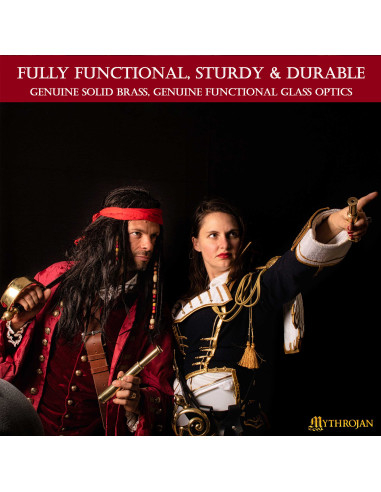 Catalejo pirata in ottone con scatola in legno (23 cm.)