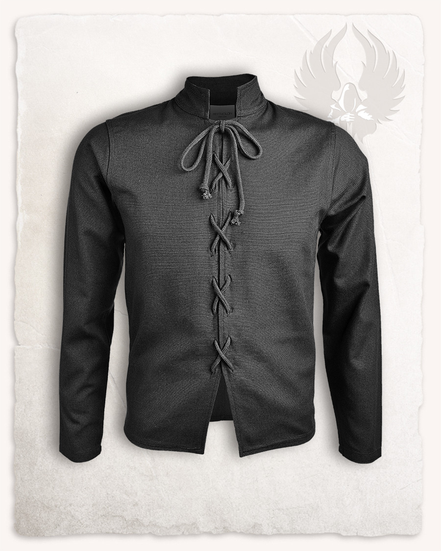 Il Farsetto Medievale Leonhardt ha un design semplice ma elegante, con chiusura frontale con lacci che permettono di regolarlo perfettamente. Il suo collo alto evidenzia il look militare caratteristico dell'epoca, donandoti un tocco di classe.