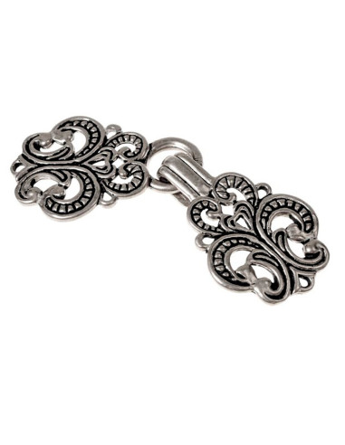 Questa chiusura per abito o mantello è realizzata in metallo di alta qualità, garantendone la durata e la resistenza nel tempo. Inoltre, puoi scegliere il bagno che più ti piace, potendo scegliere tra bronzo o argento.