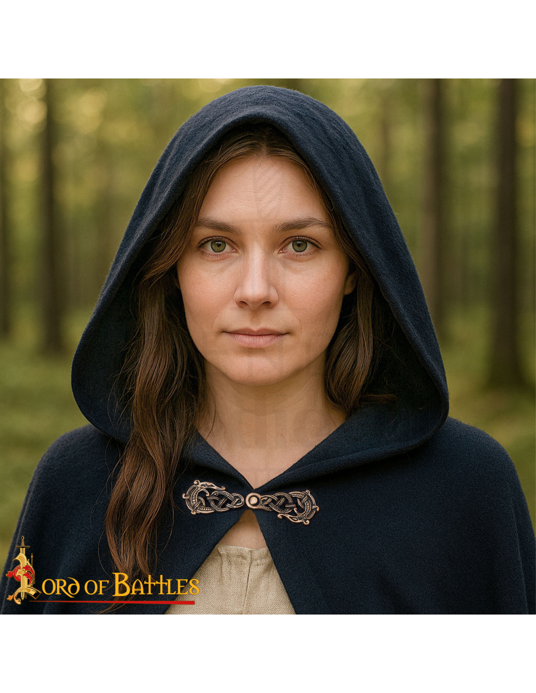 Questa Chiusura per mantello vichingo in bronzo invecchiato combina presenza e funzionalità, offrendo una chiusura rapida e sicura che esalta qualsiasi indumento senza sacrificare il comfort. Grazie al suo design a due pezzi, con una linguetta che si incastra in un ricevitore, puoi allacciare e slacciare con facilità, mantenendo il tessuto al suo posto anche durante movimenti o vento marino.