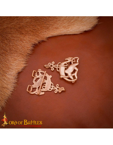 Chiusura mantello medievale con corvi celtici in bronzo (6,3 cm.)