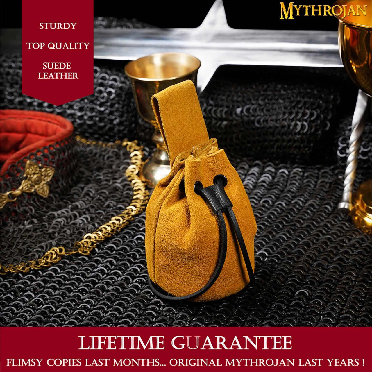 Pacchetto di 2 borse medievali in pelle scamosciata, rosso vino