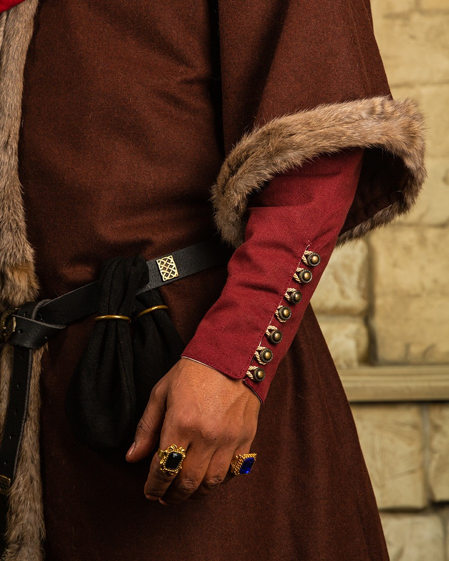 Confezione di 2 borse limosneras medievali in pelle scamosciata di colore marrone scuro