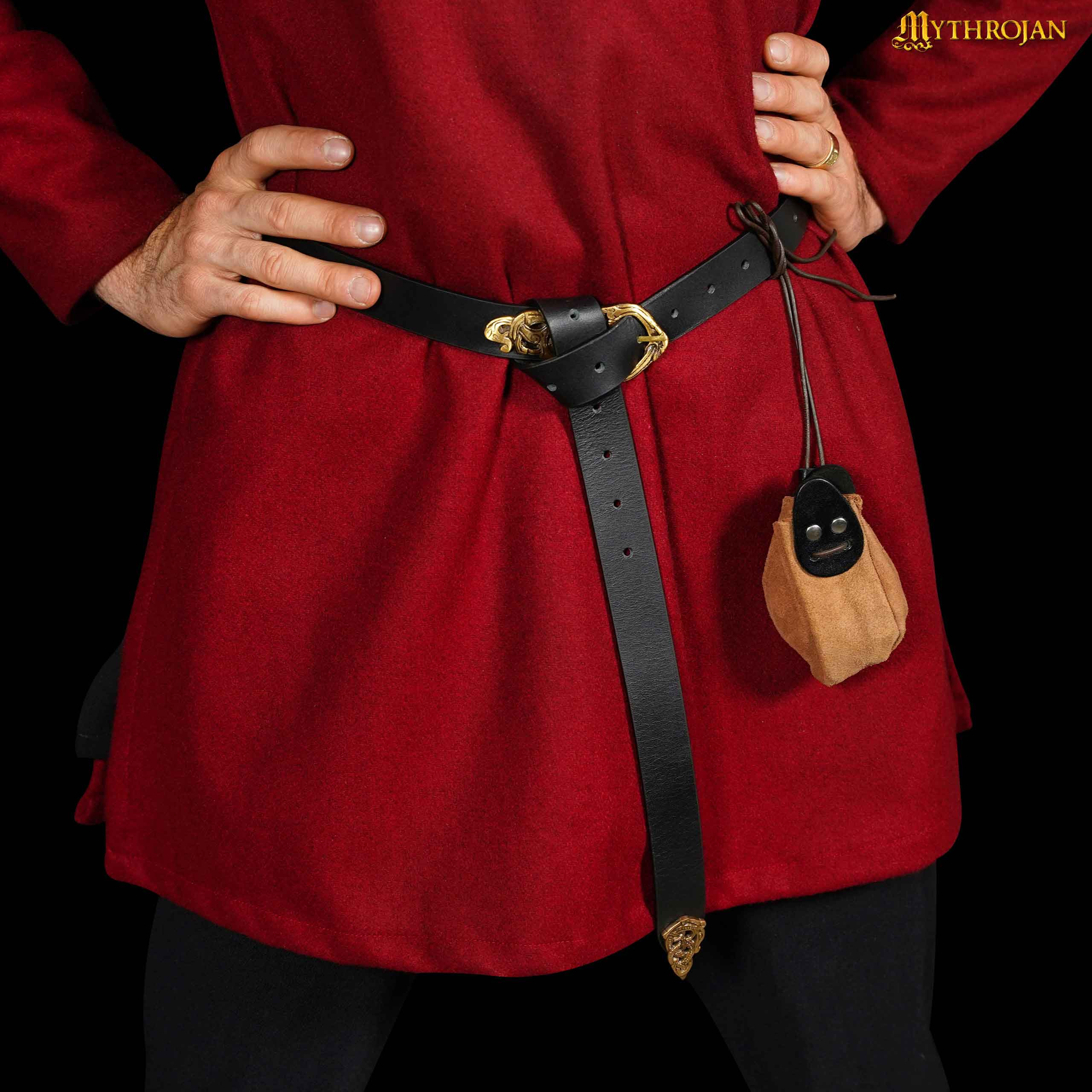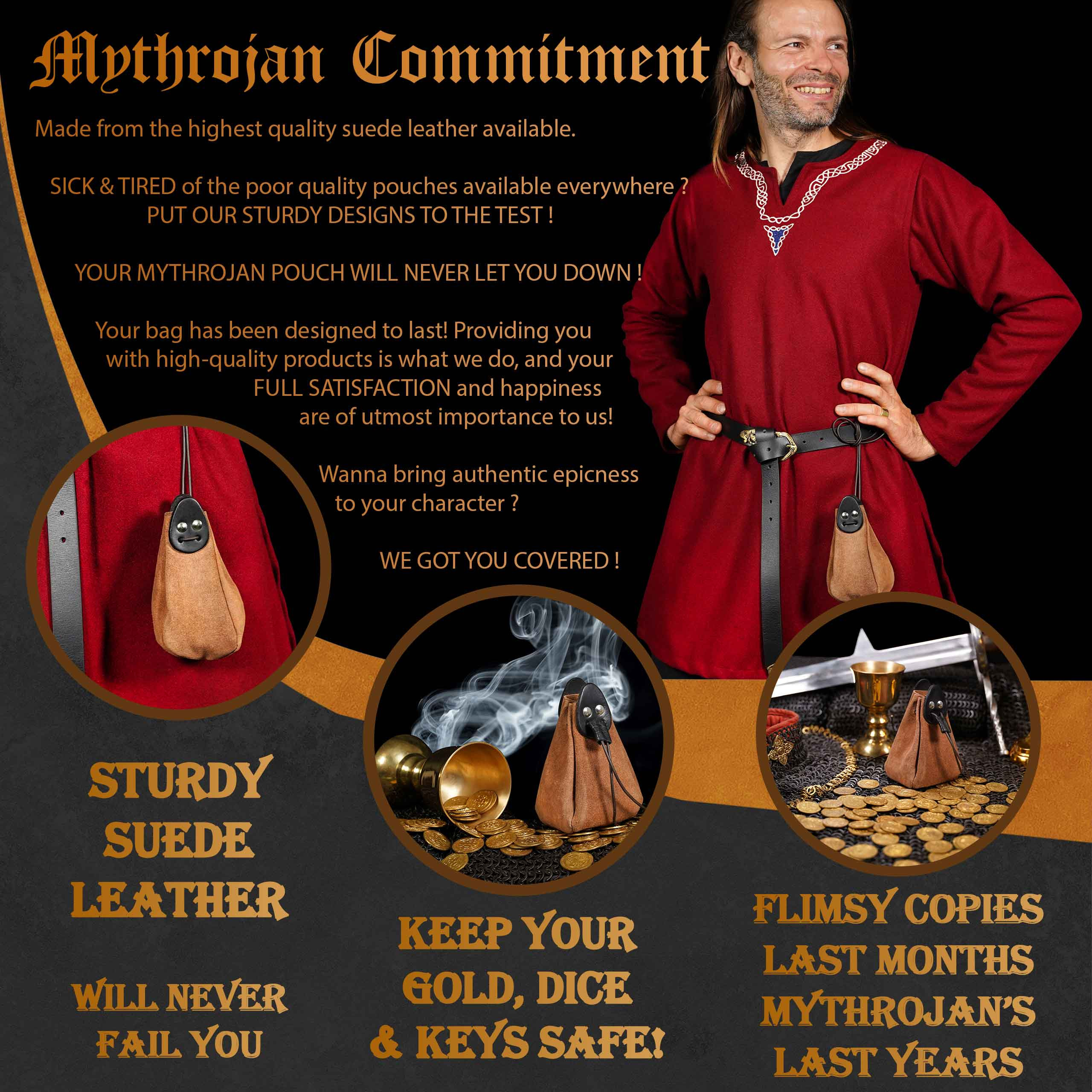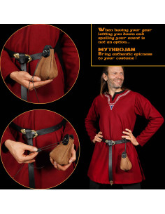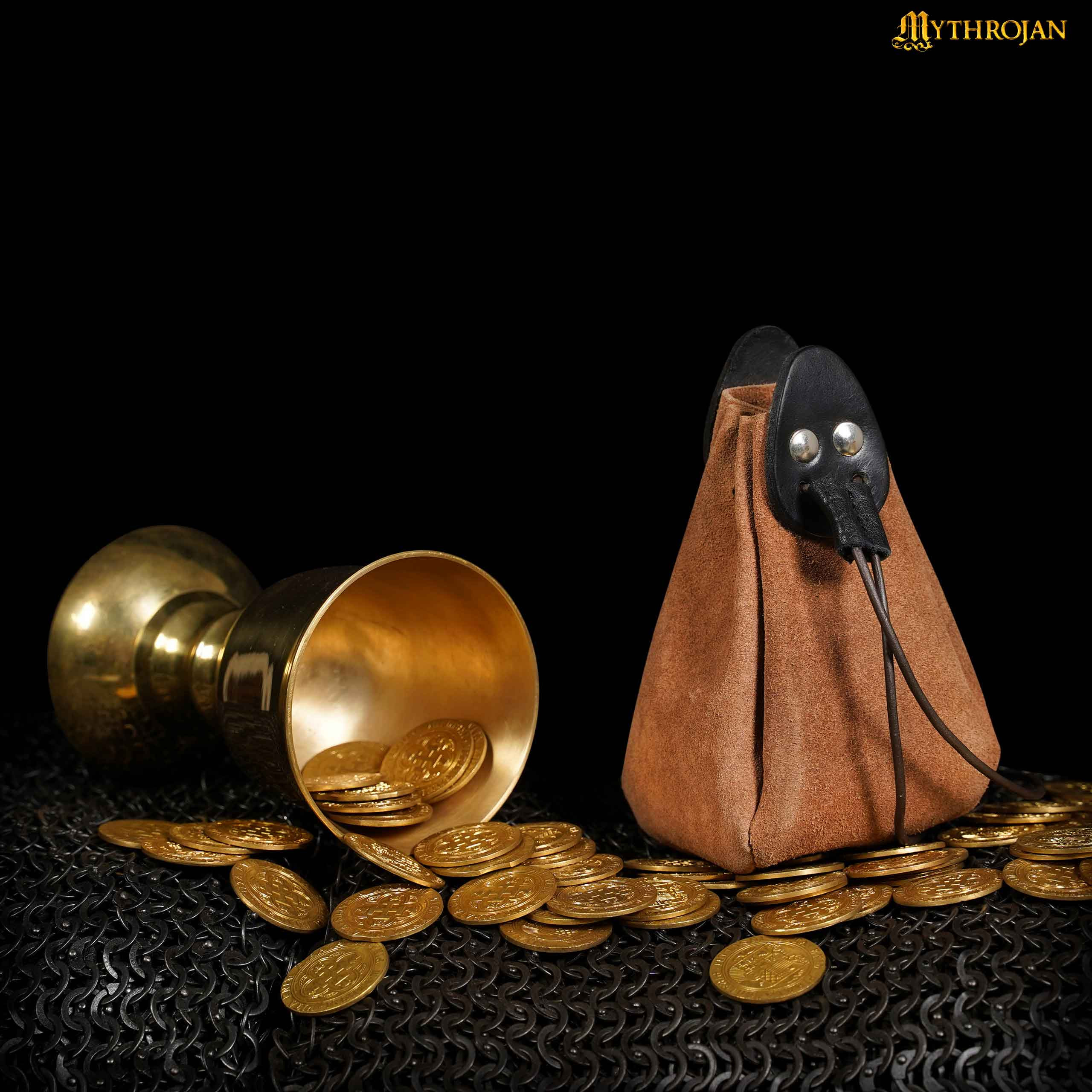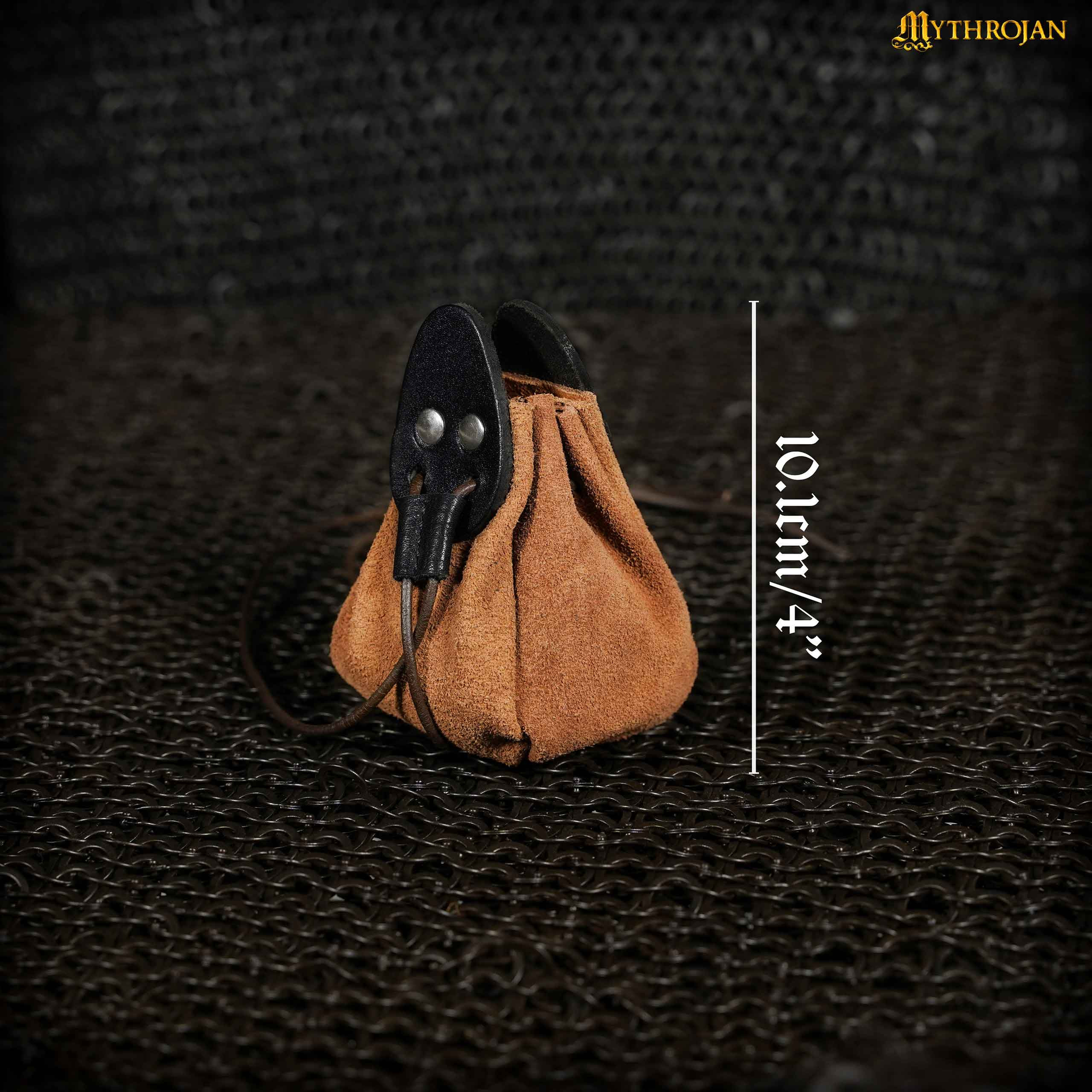 Pacchetto di 2 borse limosnera medievali in pelle scamosciata, colore marrone chiaro