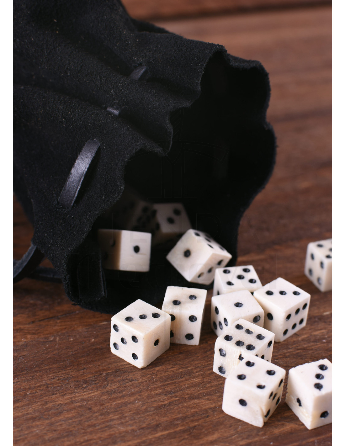 Grazie alla sua chiusura regolabile con due cinturini sulla parte superiore, puoi assicurarti di tenere i tuoi oggetti ben protetti, mentre la sua dimensione compatta facilita il portarla con te senza problemi. La texture liscia e la finitura elegante in nero aggiungono un tocco di raffinatezza, ideale per completare abiti storici o per aggiungere un dettaglio unico alla tua decorazione o collezione medievale.