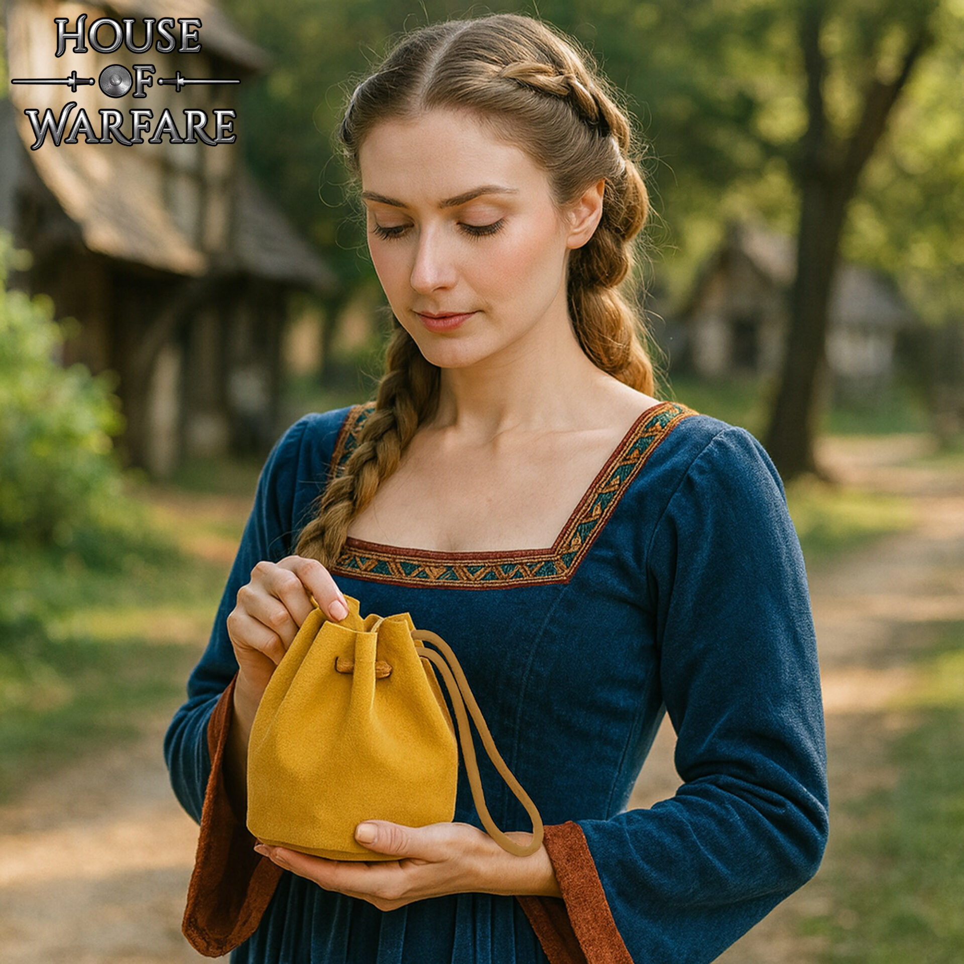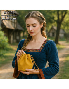 Sacca medievale in camoscio con cordino per cintura