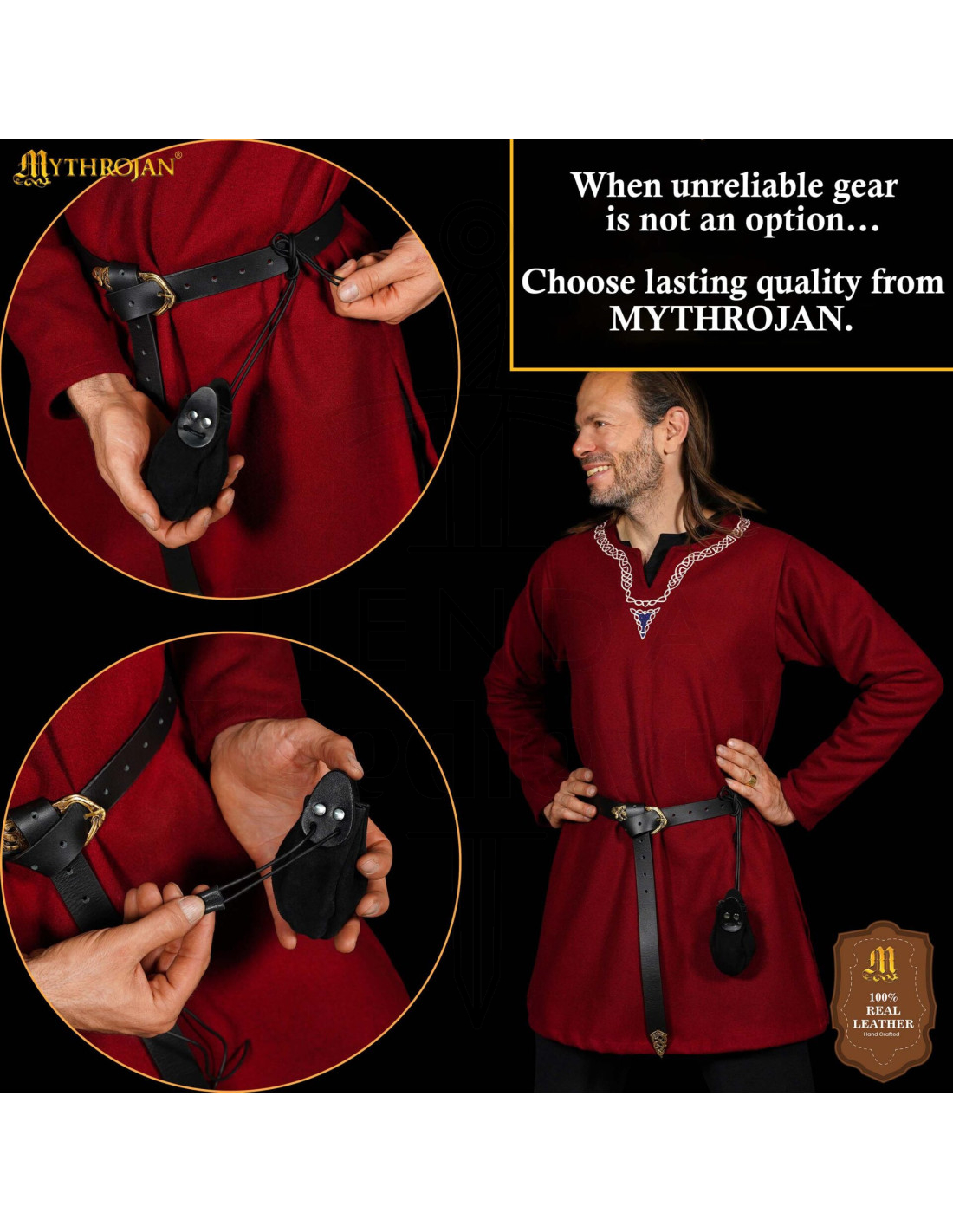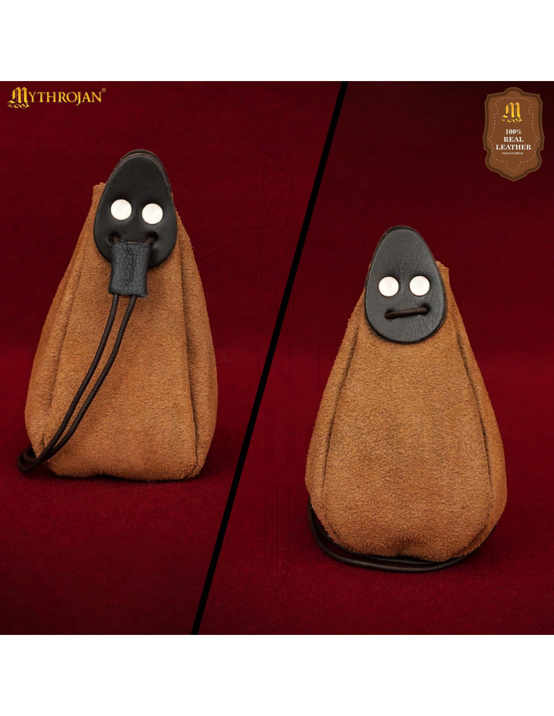 Progettata seguendo la tradizione “Gold and Dice”, la sua linea rimanda all'estetica medievale, ideale per ricreazioni storiche ed eventi LARP, così come per chi cerca un tocco autentico nella propria quotidianità. La sua base piatta permette di appoggiarla verticalmente, evitando fuoriuscite e facilitando l'accesso al contenuto, e i rivetti metallici aggiungono durata e un finish rustico artigianale.