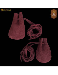 Pacchetto di 2 borse medievali in pelle scamosciata, rosso vino