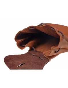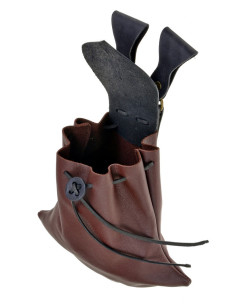 La sua silhouette trapezoidale, fedele ai modelli dell’Alto Medioevo, crea una linea compatta che esalta l’estetica del costume storico, senza ingombrare né compromettere la mobilità. La pelle bovina morbida si adatta al movimento, offrendo una sensazione piacevole e un’apertura fluida per accedere rapidamente all’essenziale.